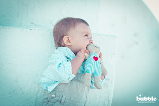 O Miguel é outro patinho, como o João. Pelo menos nesta idade. Adorava estar sentadinho à beira-mar e quando as ondas teimavam em não chegar a ele punha-se a refilar e a chamá-las. Os outros faziam piscininhas para ele se molhar e ele delirava. Até dentro de água, ao colo, ria-se nervoso à medida que eu o ia molhando e, se nos primeiros dias se agarrava a mim de unhas cravadas, no fim já ficava só agarrado pelos braços a bater os pézinhos todo contente. O dormir é que foi um bocadinho dramático... as sestas eram uma questão de sorte, ou pegava a dormir 3 horas seguidas ou então nem pregava olho. À noite adormecia logo a seguir ao jantar, mas várias vezes acordava passado um bocado e era um vê se te avias para o pôr a dormir quando nos íamos deitar. Estranhou a cama, a casa, a rotina... andou de colo em colo porque "coitadinho, já está há tanto tempo no ovinho..." e não tinha grande alternativa porque não gatinha e se o sentamos no chão acaba por cair de cabeça, se o deitamos num tapete rebola até chegar onde não deve.